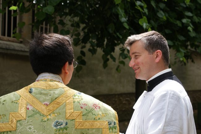 Le dimanche 3 juillet, en ce tout début de vacances, sont venus célébrer leur première messe chez nous deux anciens de notre communauté, l’abbé Cyrille Perret, à la messe de 10h: Et l’abbé Jean du Parc, à celle de 11h45, suivies des bénédictions de jeunes prêtres: