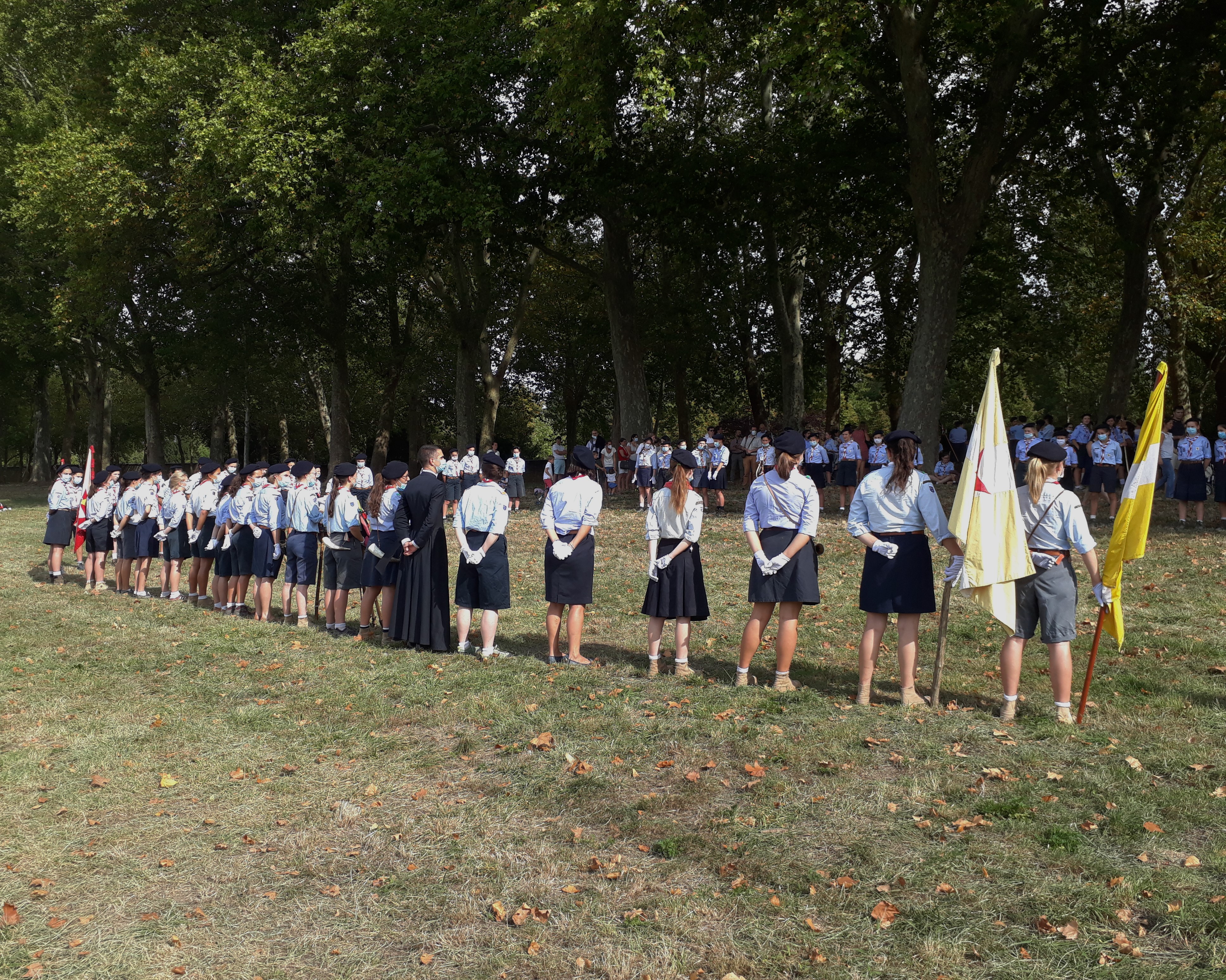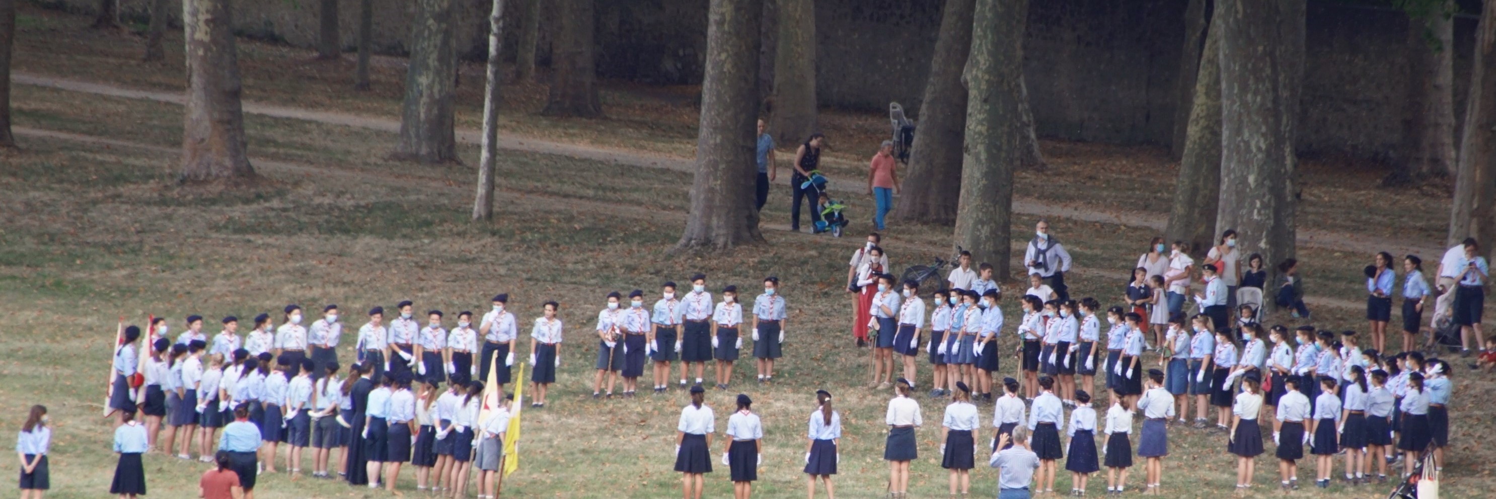 En ce samedi 19 septembre, ce furent près de 500 louveteaux, louvettes, scouts, guides, routiers, guides ainées, chefs et cheftaines qui se sont retrouvés à la Pièce d’Eau des Suisses pour les montées dans les unités et l’accueil des nouveaux!