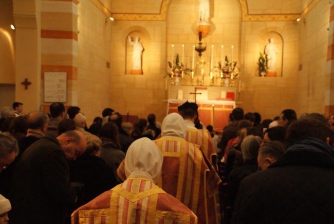 Le matin du samedi Saint , la liturgie nous fait chanter le Chant des Ténèbres (Matines et Laudes), pendant lequel s’éteignent une par une les bougies du candélabre, jusqu’au « tremblement de terre »qui rappelle la rupture entre la nature et la grâce. puis dans la nuit cette magnifique cérémonie de la Veillée Pascale, avec la bénédiction…