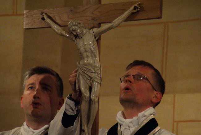 Voila quelques photos de cette si belle messe du 13 mai, suivie de la consécration au cœur Immaculée de Marie, et de la dépose du cœur reliquaire entre les mains de la statue qui veille sur nous, au dessus de l’autel…