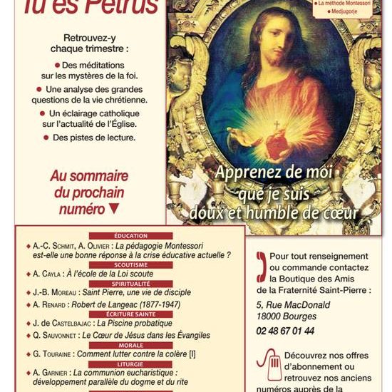Pour approfondir votre foi pendant les vacances, la Fraternité Saint-Pierre propose à ses fidèles une revue de formation: la Revue…