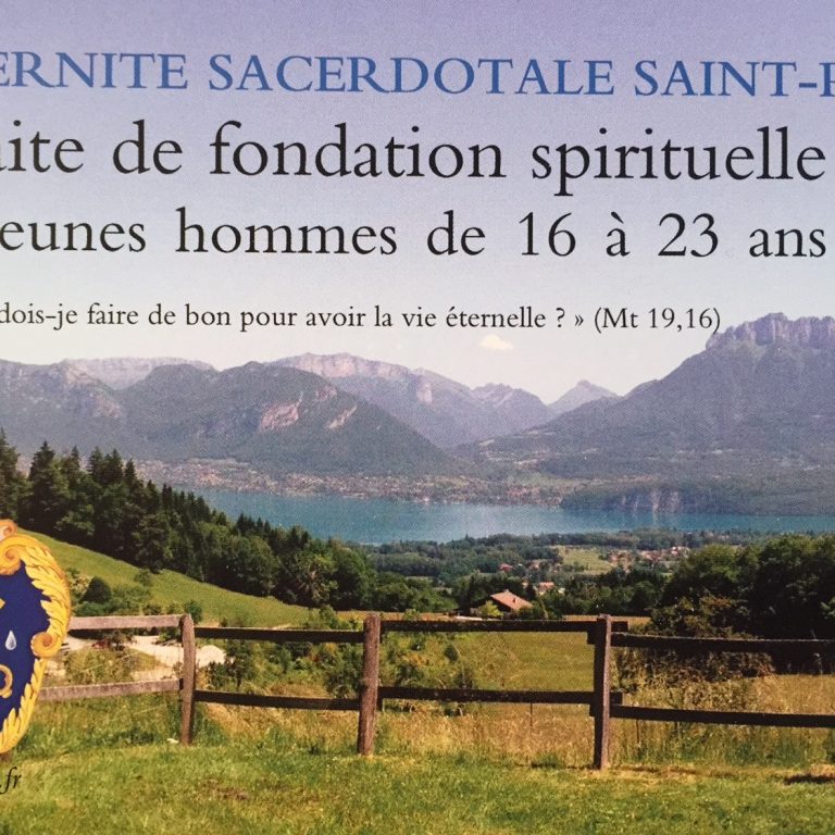 La Fraternité Saint Pierre propose une « retraite de fondation » aux jeunes garçons âgés entre 16 et 23 ans, du 25…